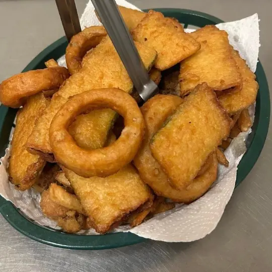 Zucchini, Mushrooms, Cauliflower, Onion Rings, & French Fries