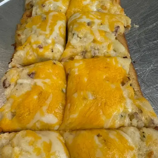 Garlic Mashed Potato, Cheddar Cheese, Bacon and Onions